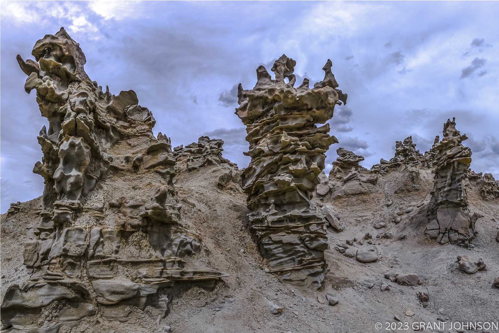 What at first appears to be Moorish architecture is the result of one of the largest volcanic eruptions in North American history. Geologists at the University of California, Berkeley have determined the eruption deposited vast amounts of ash which was subsequently snowed upon. The hot ash melted the snow which began to boil while seeping into the ash, causing a catalyzing effect. The boiling solution hardened compared to the surrounding sediment, which then eroded away, leaving these fragile colonnades.